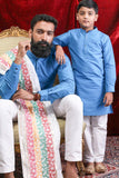 Aqua Blue Silk Kurta & Pyjama Set For Son