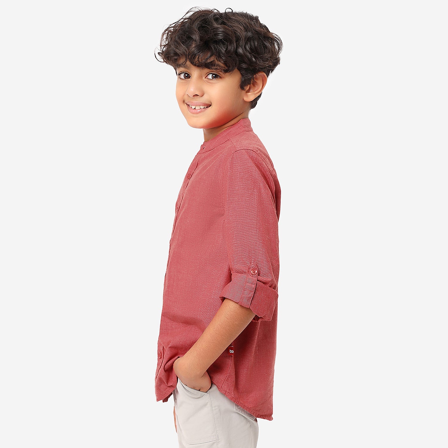 BONKIDS BOYS Solid Mandarin collar Shirt