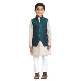 Bottle Green Overlap bandi with beige kurta pyjama set for Father-Son