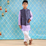 Dark Purple Bandi With Kurta & Pyjama Set For Son