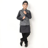Floral Print Grey Bandi With Matching Kurta And Pyjama Set For Son