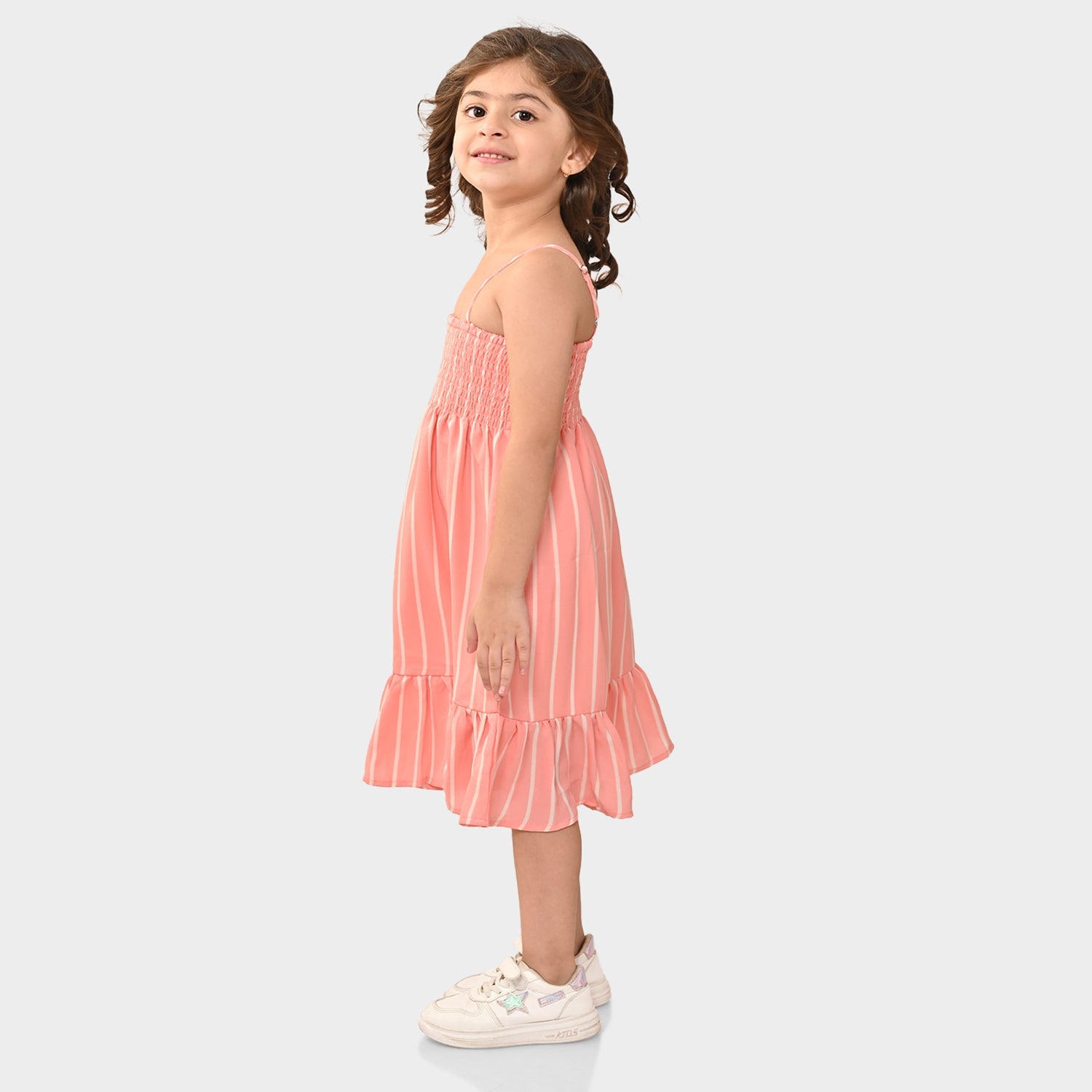 Girls Peach Sleeveless Dress
