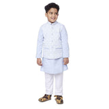 Light Blue Printed bandi with kurta and pyjama set for father son