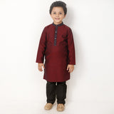 Maroon With Floral Collar Matching Kurta And Pyjama Set For Son
