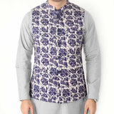 Mens Premium Navy Batik Rose Print Bandi/Ethnic Waist Coat