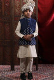 Navy Blue Printed Bandi With Beige Kurta & Pyjama Set For Son