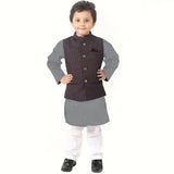 Navy Printed Bandi With Kurta And Pyjama Set For Son