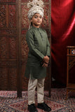 Olive Green Linen Pleated Sleeve Kurta & Pyjama Set For Son