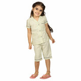 Pastel Yellow Printed Capri Style Sleepwear Set For Mom & Daughter For Daughter