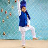 Royal Blue Textured Bandi With Kurta & Pyjama Set For Son