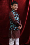 Tropical Print Bandi With Dark Brown Kurta For Boy