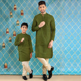 Olive Green Long Kurta & Pyjama Set For Father-Son