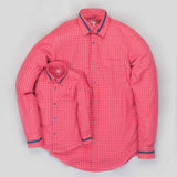 Give your wardrobe a seasonal sweep and capture the latest trends of this season. This Blue Checks red cotton button down shirt for father son from Bonorganik would be just another shirt if not for the difference in fabric and the comfort it offers. Wear it casual jeans and trouser for semi formal look