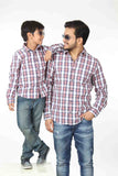 Celebrate the two most important Men in your life.Give them a gift to cherish for a life time.Perfect for family outings, photo shoots, birthdays, gifting, get together, father's Day, New fathers, festivals or on any father son day out. These matching combo set of “Pink checks penny collar full sleeve shirts” by BonOrganik are 100% cotton shirt is soft to the touch and we’re certain it’ll become one of Daddy’s & Son’s favorite t-shirts in no time.Wear it! Flaunt it!
