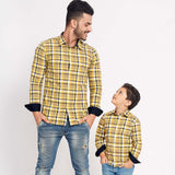 Yellow And Chequered, Matching Shirts For Dad And Son