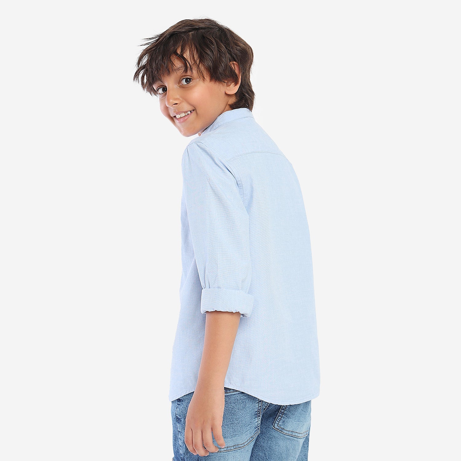 Boys Blue Solid Full Sleeve Shirt