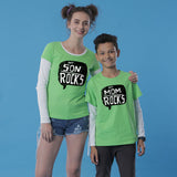 Its time to put on a little Bollywood Style Swag on with these amazing and funny " My Mom Rocks Tees " Combo tees by BonOrganik for Mother & Son. Pair these with blue denims/shorts for a look that will make memories to cherish for a lifetime.