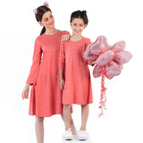 Get matching with your little princess in our trendy," Pearl Embelished Coral Flare Dress For Mom And Daughter", by Bonorganik. Style and smile!