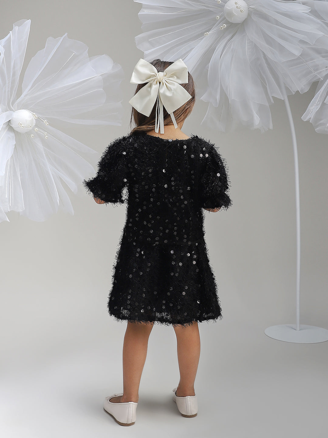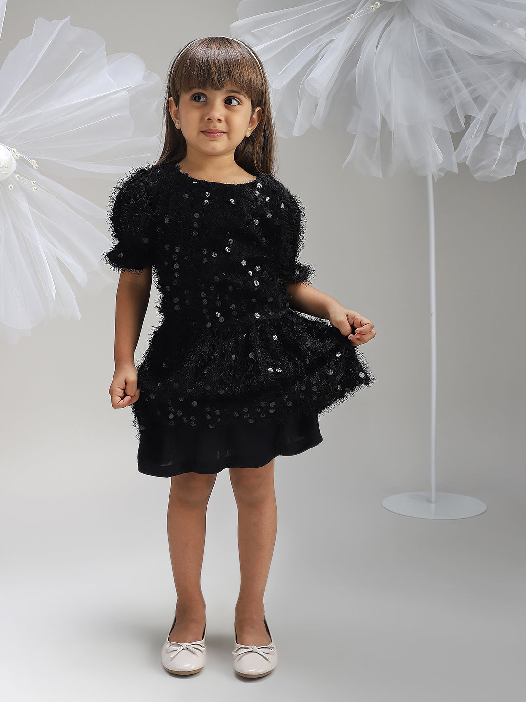 Girls Black Polyester Dress Stylish Evening and Party Outfit