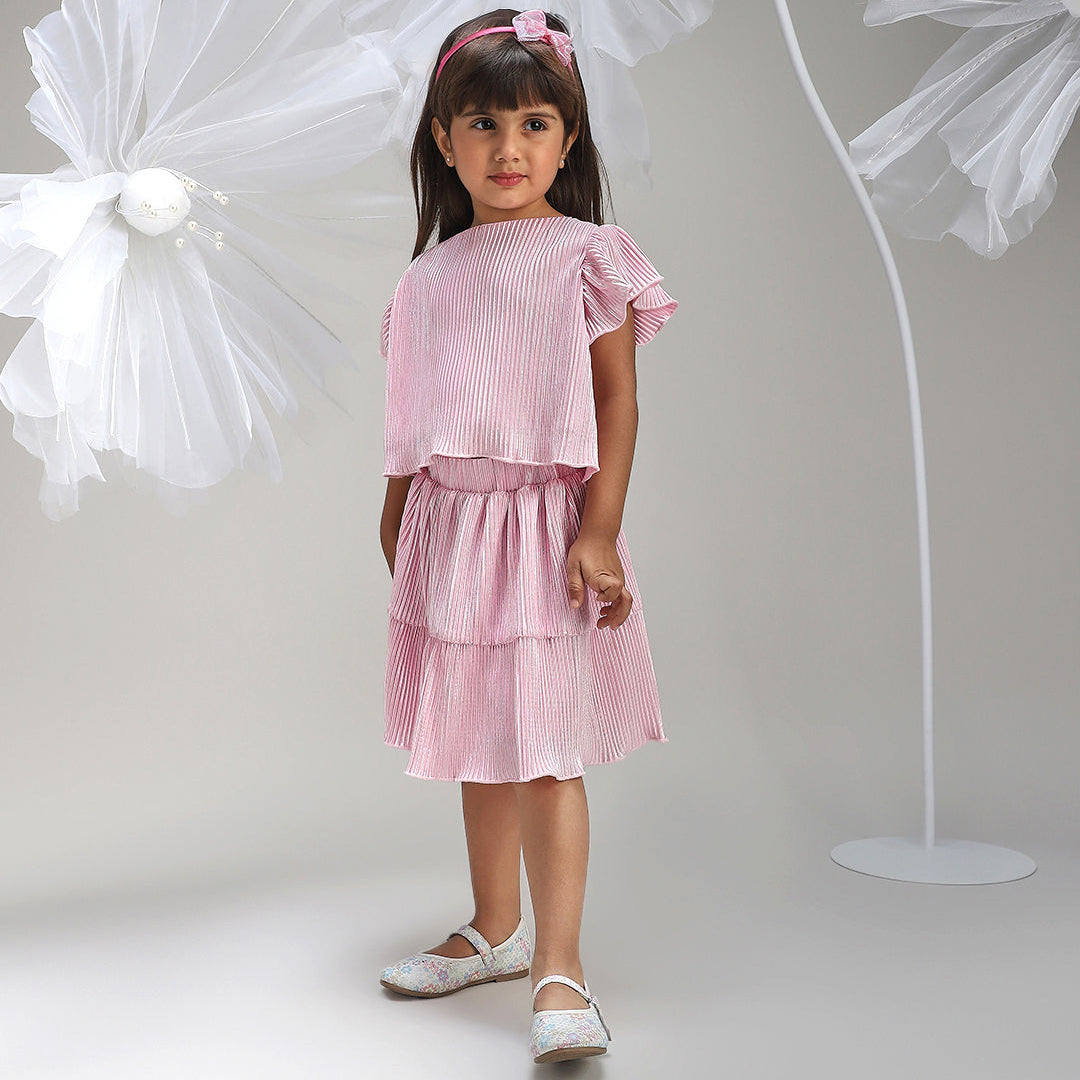 Girls Elegant Pink Polyester Party Dress Stylish and Comfortable Outfit for Kids