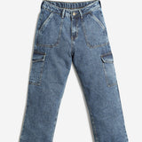 Girls Jean Clean Look Mid-Rise Heavy Fade Cotton Jeans
