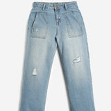 Girls Jean Mildly Distressed Light Fade Cotton Jeans