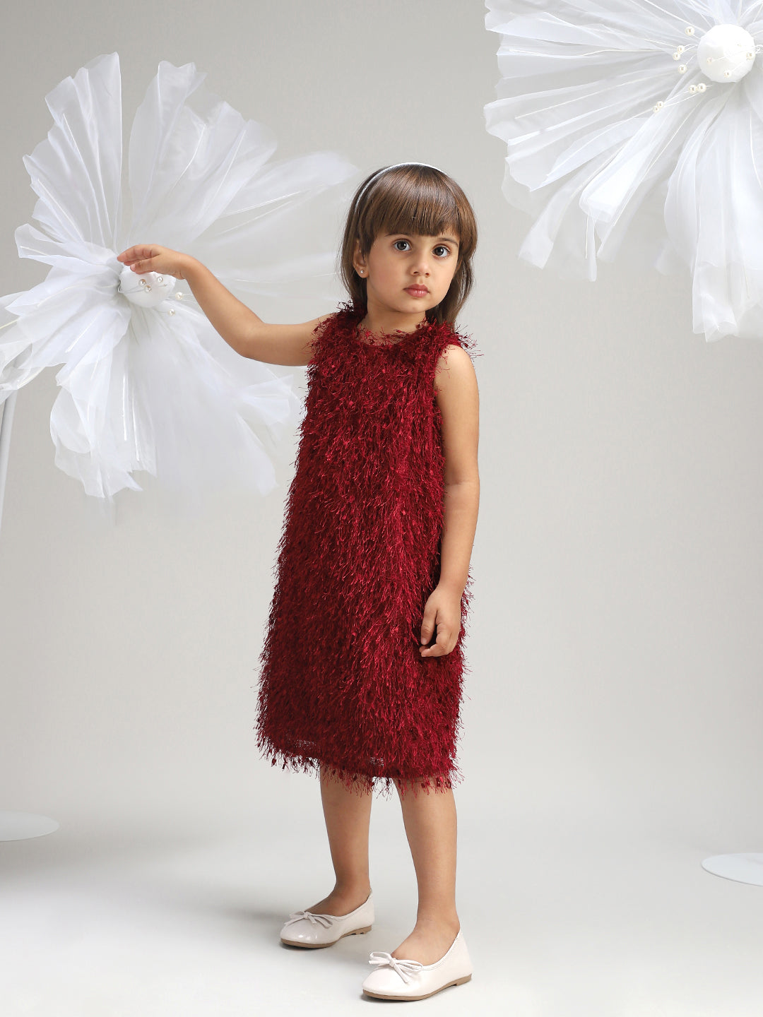 Girls Maroon Polyester Dress Elegant and Soft Festive Wear