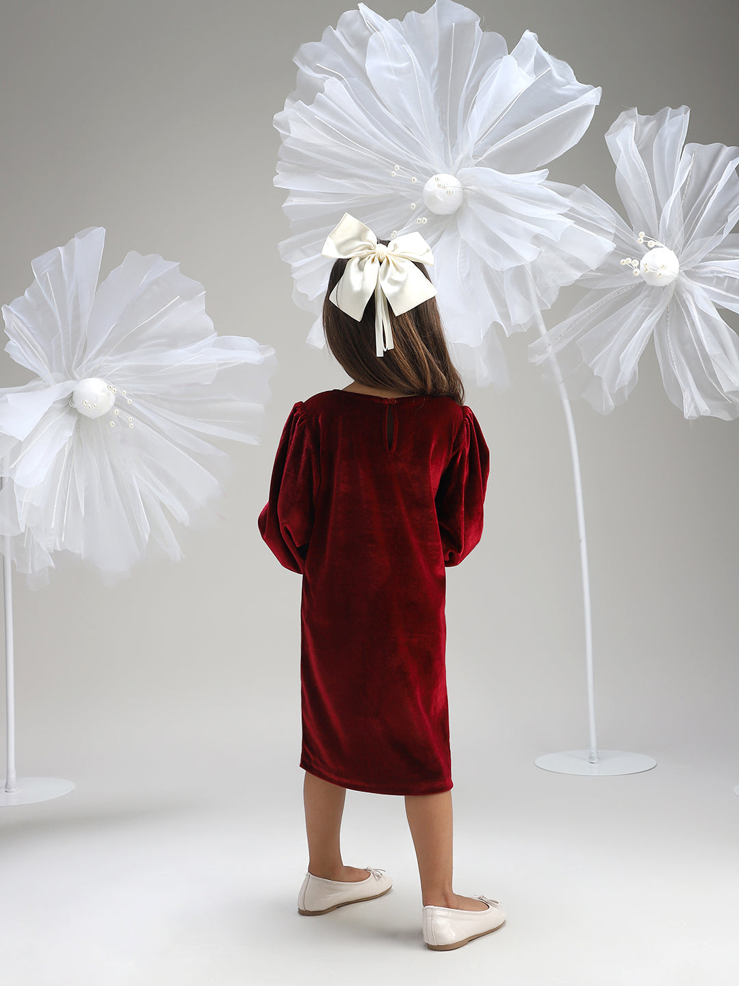 Girls Maroon Polyester Dress Elegant and Soft Festive Wear