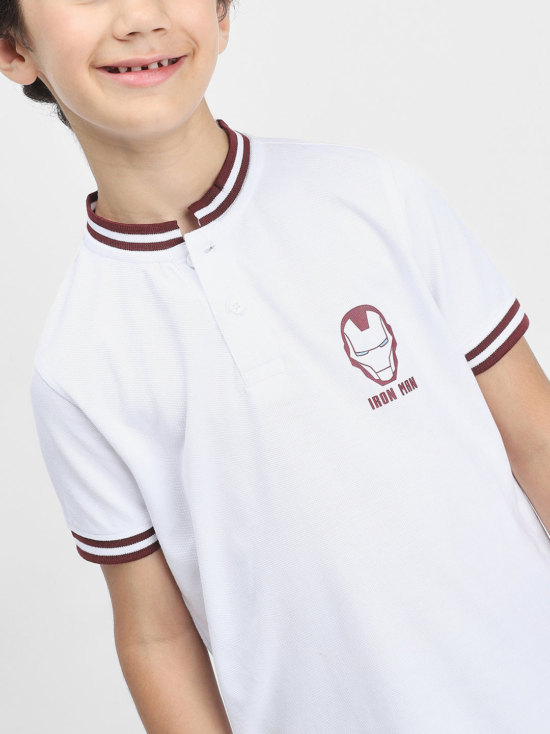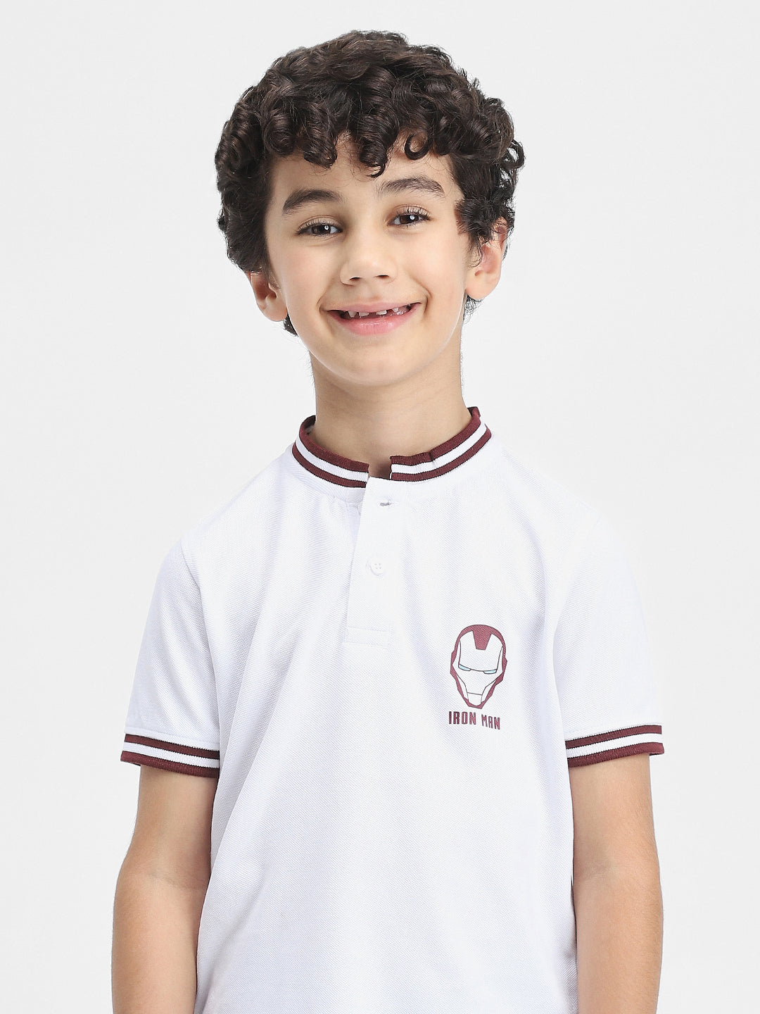 A crisp white polo tee with Iron Man embroidery that combines simplicity with character appeal. The design is versatile enough to pair with any bottoms. Lightweight and breathable, it ensures comfort for active kids. Great for family outings, casual events, or everyday wear.