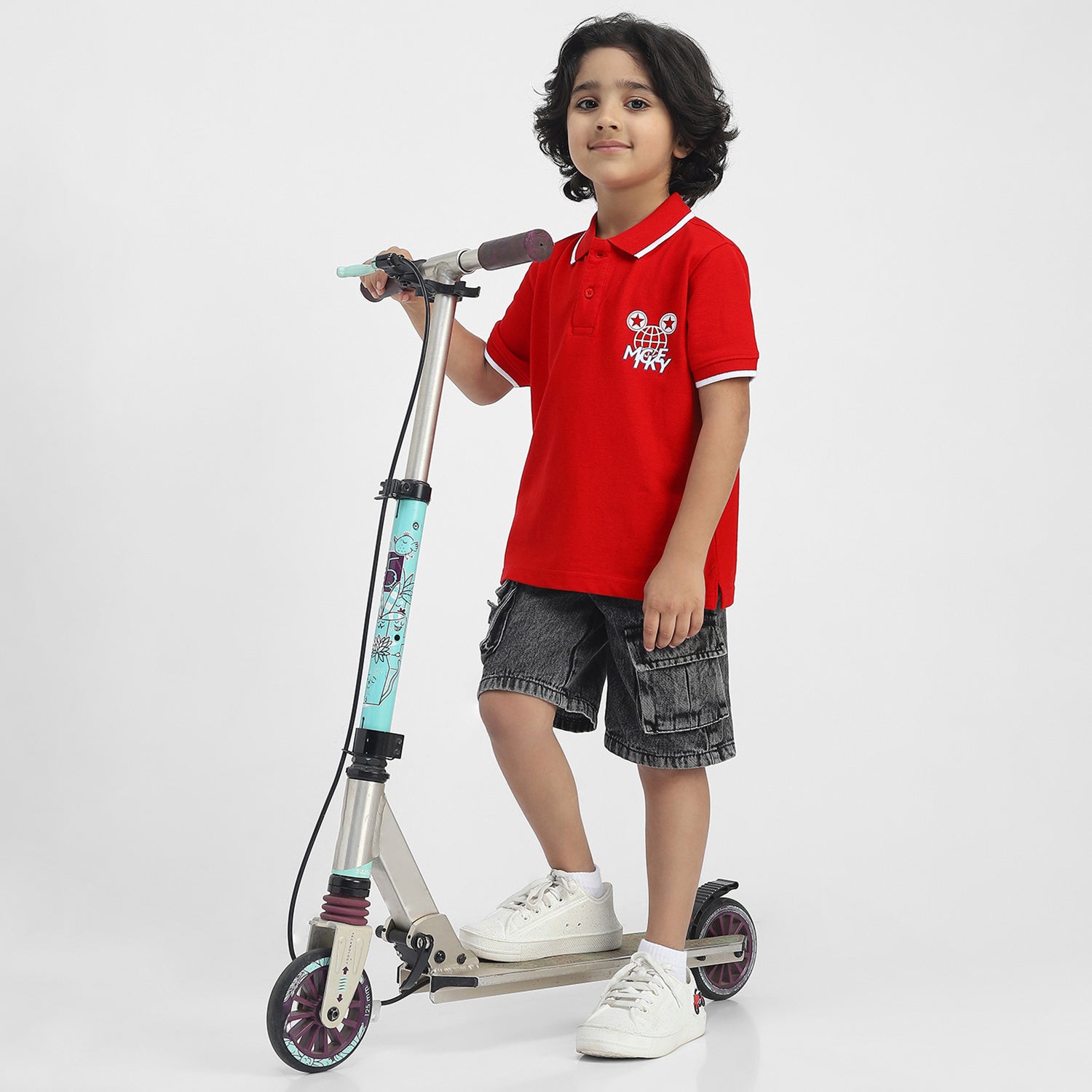 This stylish boys’ polo tee features a bright red shade and a classic polo-neck design, perfect for young Disney fans. The short sleeves ensure comfort and ease of movement, making it ideal for daily wear. Designed with a fun Mickey Mouse theme, it combines playfulness with a smart, casual look. Whether paired with jeans, shorts, or joggers, this polo tee is a versatile addition to your child’s wardrobe, suitable for both outings and casual gatherings.